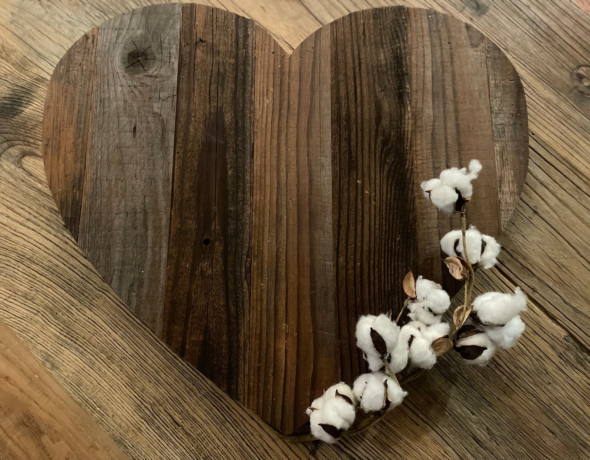 Made from joined rustic barn wood.